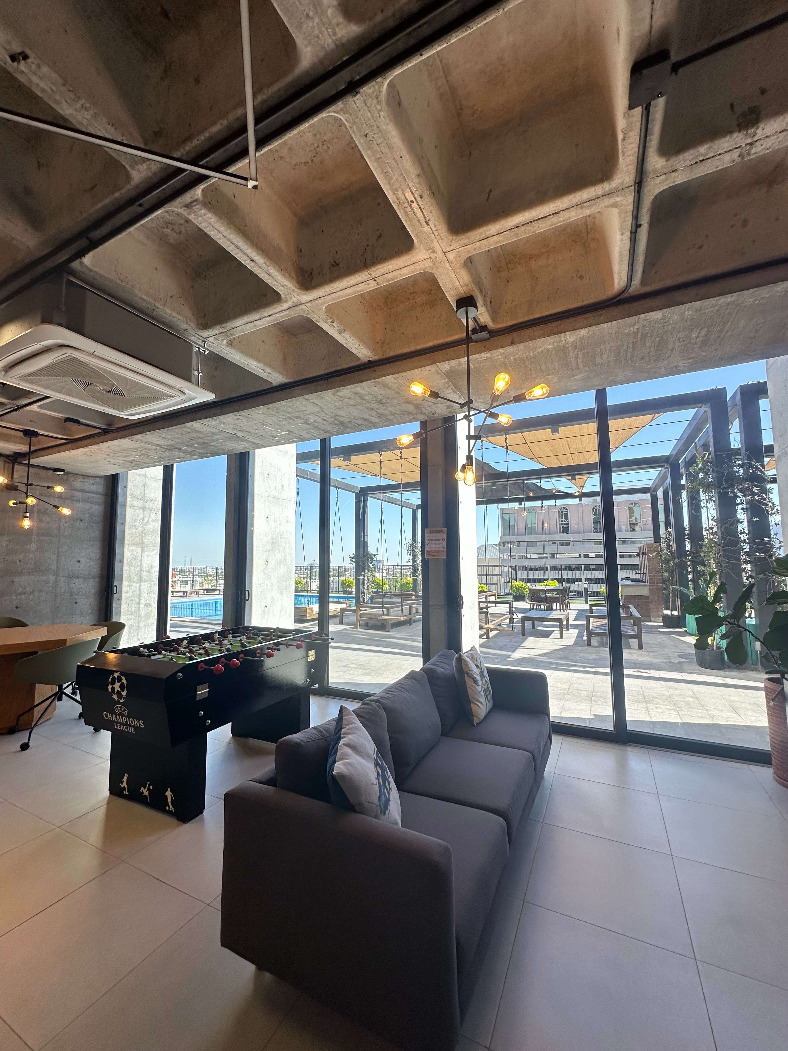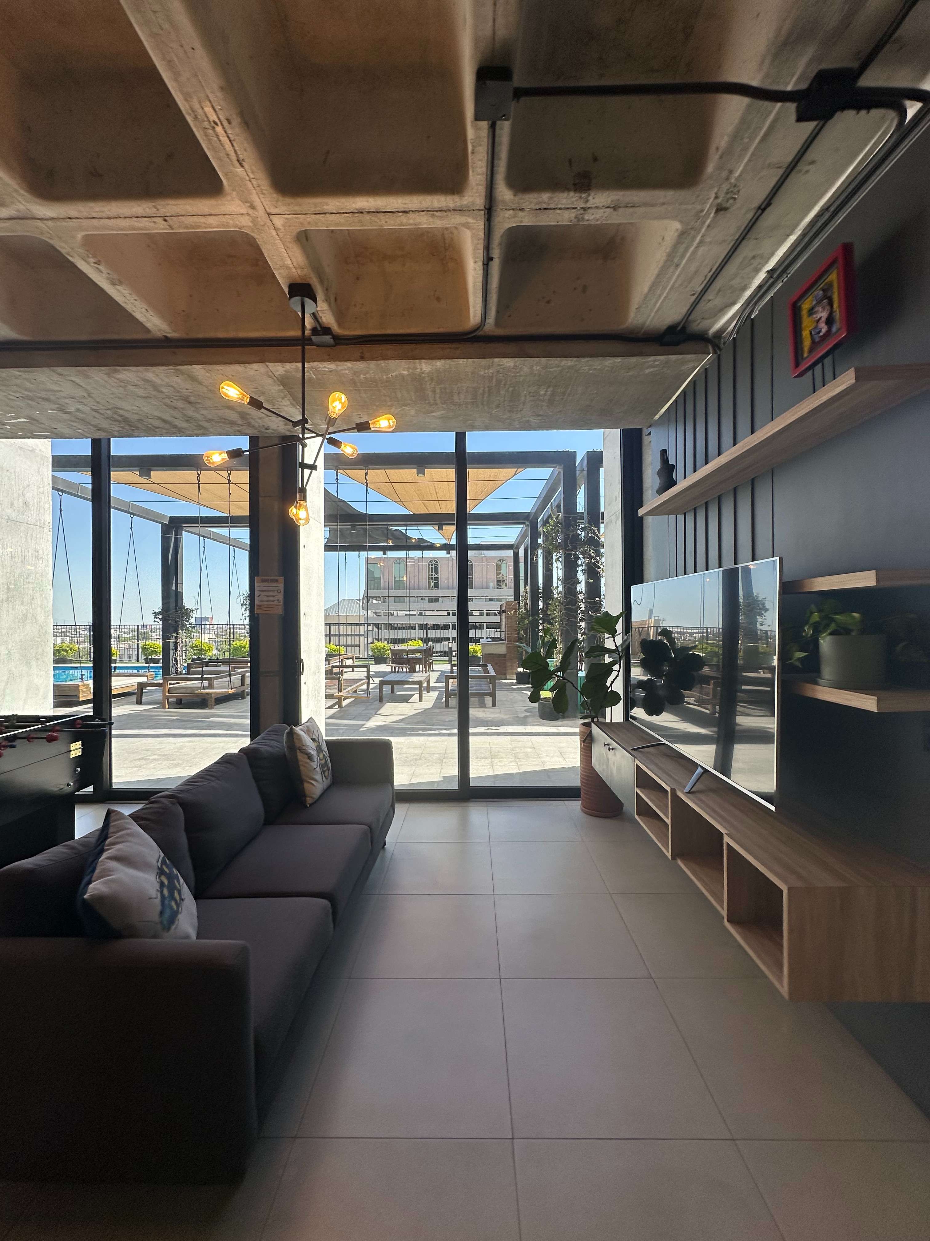 Amenidades de la torre: alberca, asadores, gimnasio, coworking, laboratorio culinario, sala de cine, salón de juegos, ludoteca, cuarto de hobbies, área infantil, callejón cultural y seguridad 24/7.